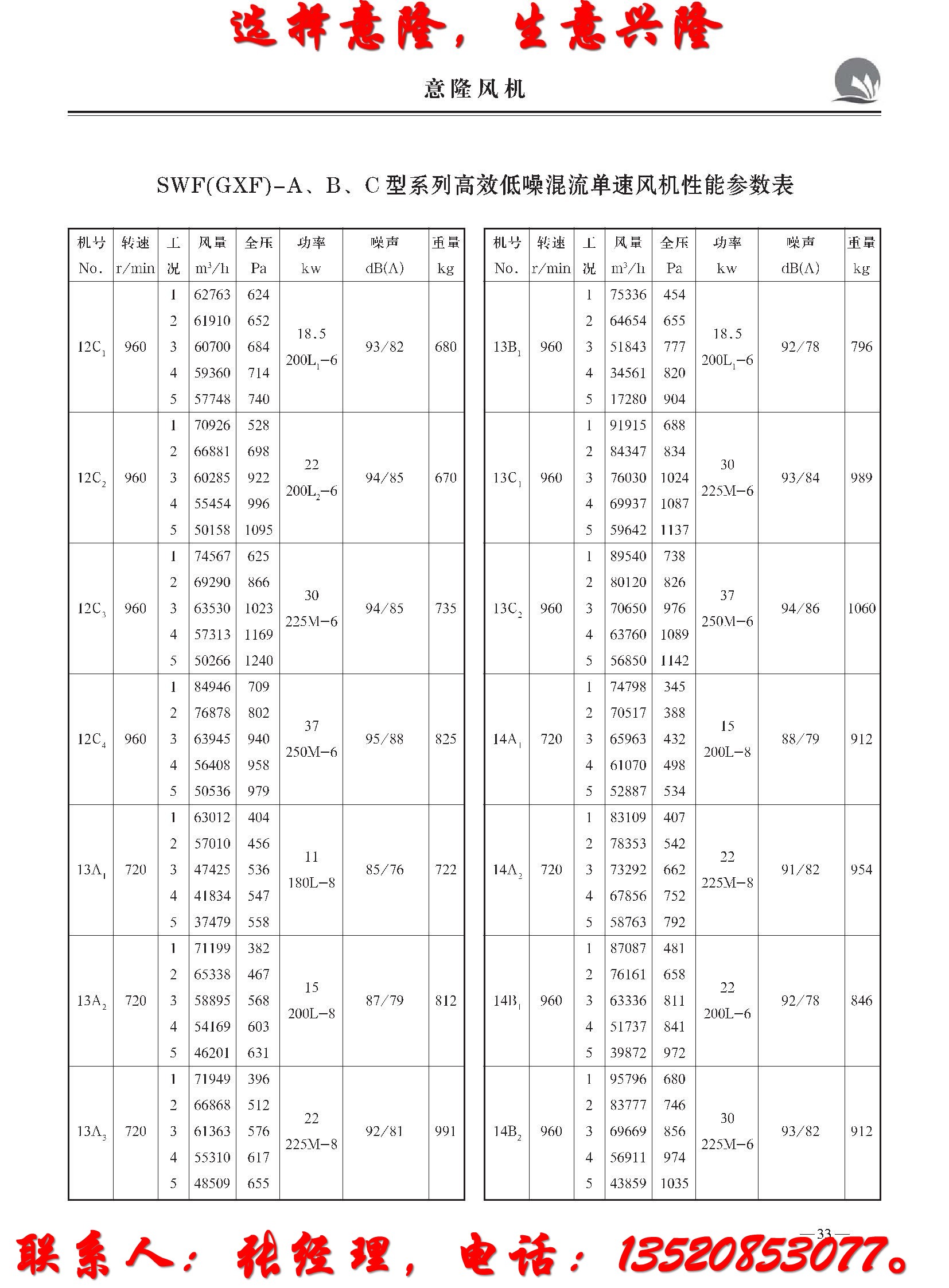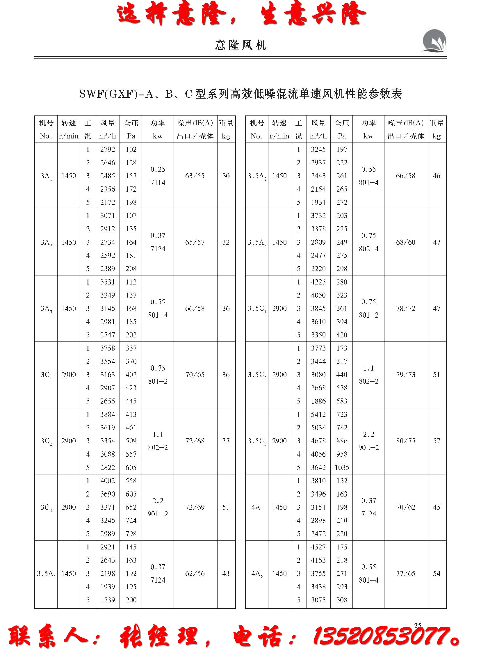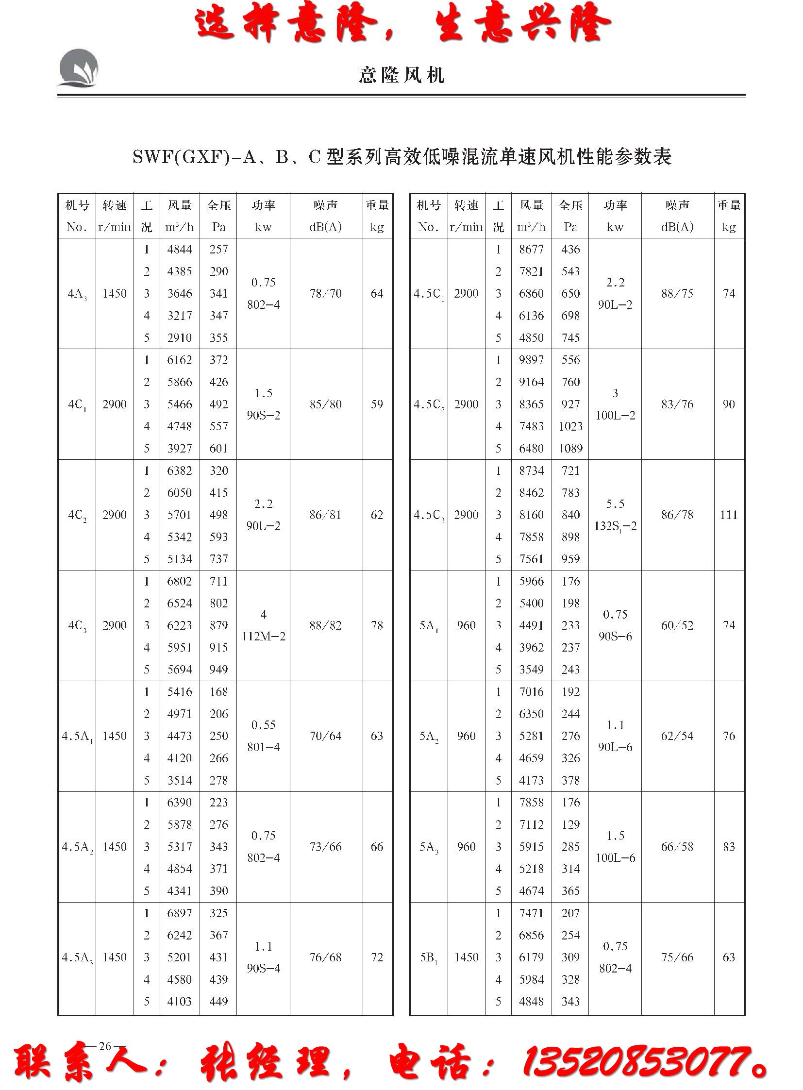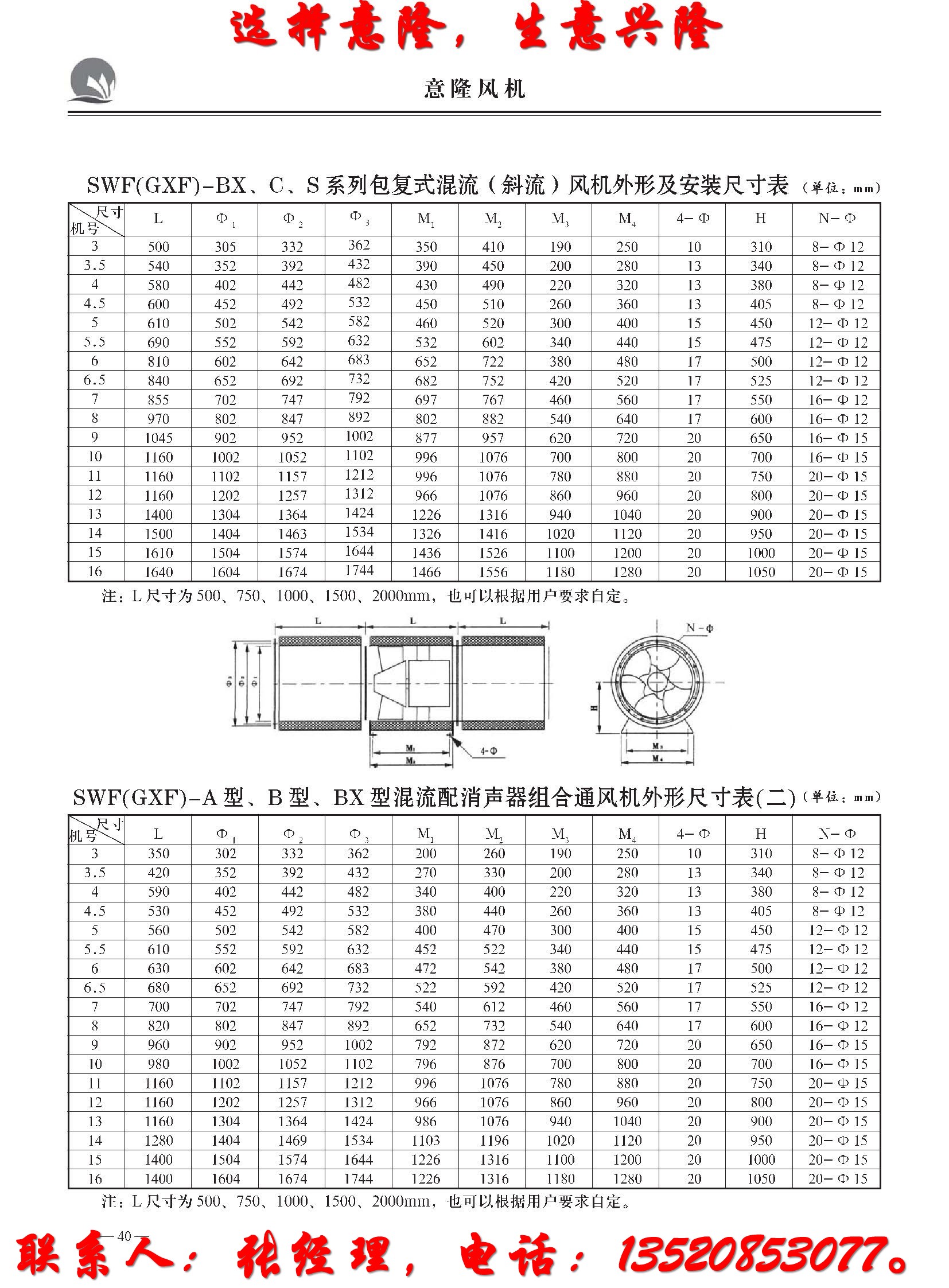SWF/GXF型混流風機適用于工礦企業、高級民用建筑的排風,可替代低壓離心風機或替代高壓軸流風機而不需采用大量措施。該系列產品分單速和雙速二種型號。可在不同的場合用改變風機安裝角度,改變葉片數,改變轉速的方法達到使用的目的,A式傳動。該產品效率高,高效區寬,本機采用先進的CAD系統軟件并經多目標優化,性能顯示設計研制的高科技產品,應用斜流子午加速法,壓力較同機號軸流式高,風量較同機號離心式大;結構緊湊安裝方便,該風機在排同風壓風量情況下比軸流式和離心式體積小,可直接與風筒聯接,水平安裝或垂直安裝,也可在墻或支架上安裝;噪聲低。